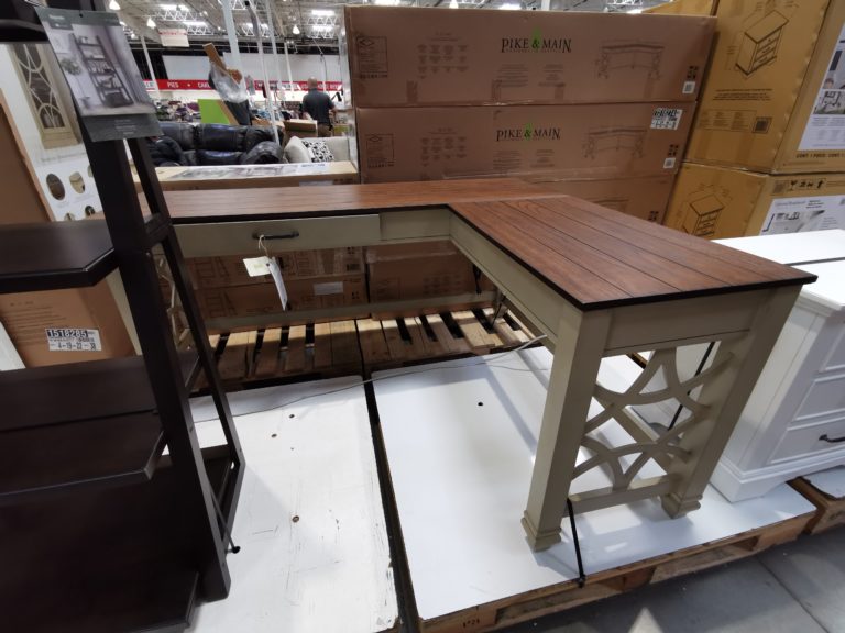 Select Costco locations have the Pike and Main 57″ Writing Desk in stores for a very, very limited time Equipped with 2 drawers with full extension ball bearing drawer glides and dovetail drawer extension